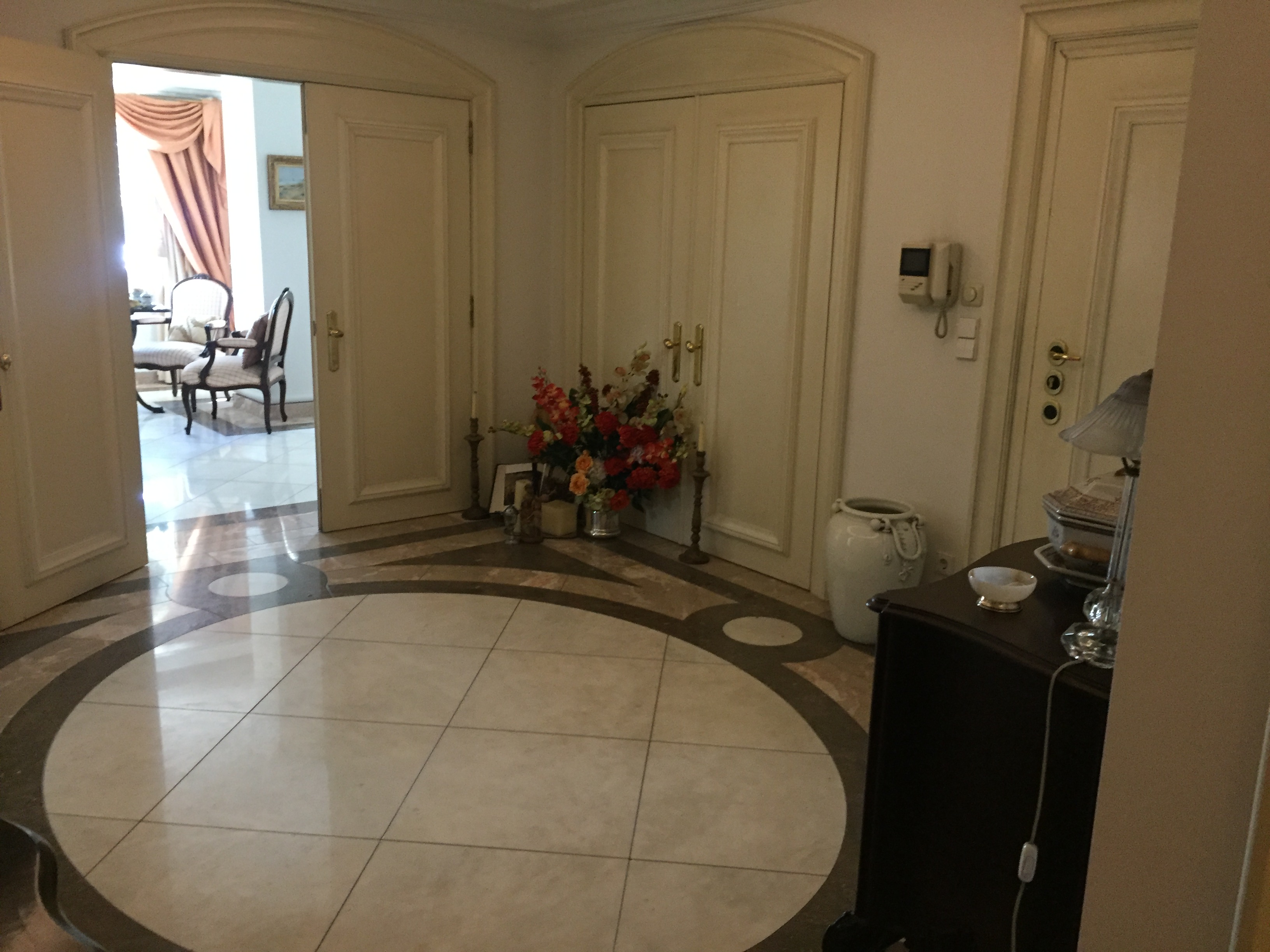 Entrada principal; Hall, sala de estar, sala de jantar, wc social, escritório, suite principal 2º suite, três quartos, casa de banho, quarto de empregada, casa de banho, cozinha, lavandaria, box para três carros e arrumo. Ref. 3012 Classe Energética C Preço: 1.350.000€